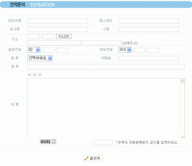 게시판 기본 스킨을 활용한 심플한 온라인견적.[샤이닝]님꺼에서 수정