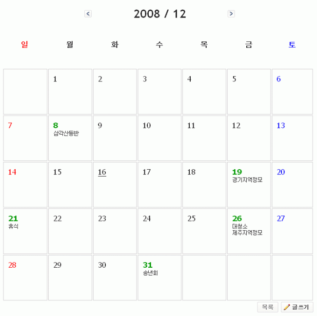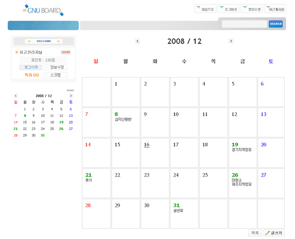 음. 게시판으로 사용하려는데;; 일정표가 바로 나오는건 아니네요 ㅡㅡ; 머 어찌해야하지?ㅋ 퓨