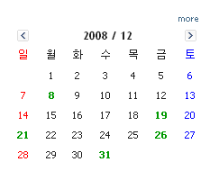 기존 일정스킨처럼 날짜옆에 공휴일/기념일/음력 출력이 포함되고,
