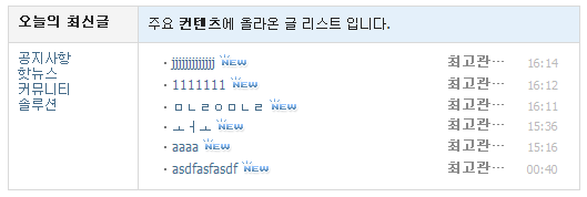 최근게시물 (왼족메뉴선택)