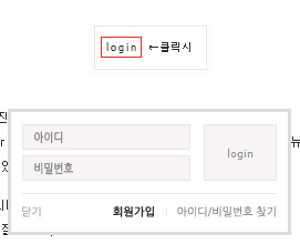 레이어 팝업 로그인 스킨이기 때문에, 로그인을 호출하는 곳은 자유로우며, 단순한 링크로 레이어를 숨기거나 보실 수 있습니다.
