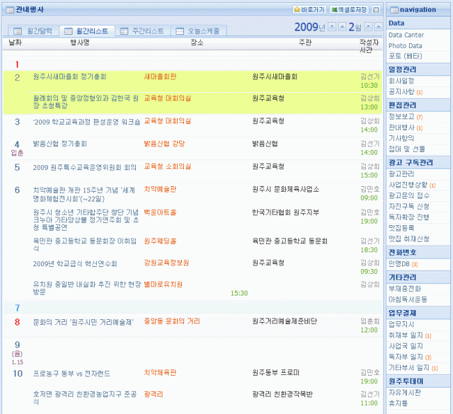 게시판 행사일정 월간/월간리스트/주간/오늘
