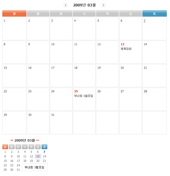 와~ 일정관리게시판은 요게 제일 기능성이 있네요. 특히 서브페이지의 head부문 를 변형한 php문서의 경우도 원하는 틀 그대로 적용되네요.