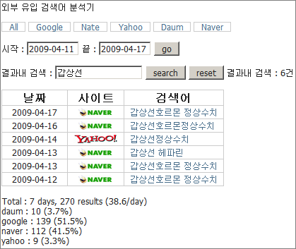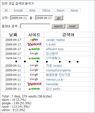 • 구글, 네이트, 야후, 다음, 네이버에서 검색해서 들어온 검색어를 보여줍니다.