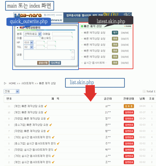 out_consult.zip 에 있는 quick_consult_bd는 이 플러그인에 대응하는 게시판 스킨이고요.