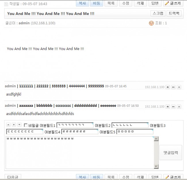 게시판 basic게시판에 코멘트 여분필드 기능 추가~