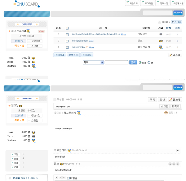 basic.zip 파일은 계급장 적용한 그누보드 기본 게시판스킨입니다