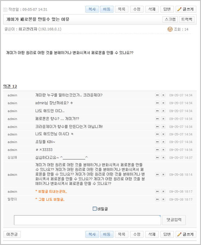 게시판 의견쓰기 코멘트 게시판 (지식인참고)
