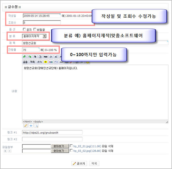 실예 : http://website114.com/gnuboard4/bbs/board.php?bo_table=menu07_06