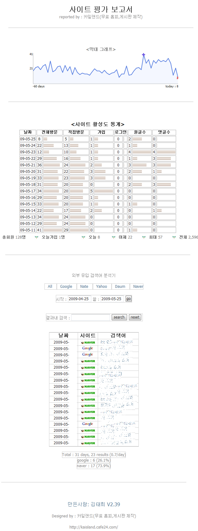 방문자수 [사이트 보고서] '카일 리포트' 입니다. 당신의 사이트를 한눈에 보여드립니다.