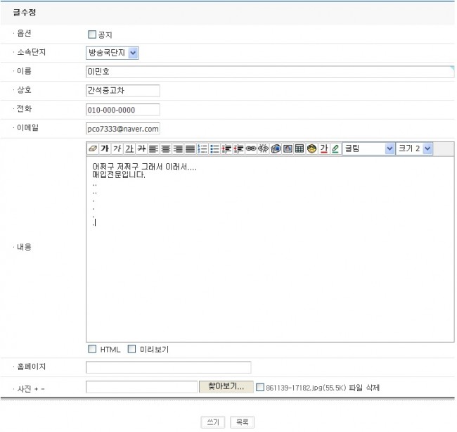 저는 왜 안될까요 내용쓰는란이 안나오네요
