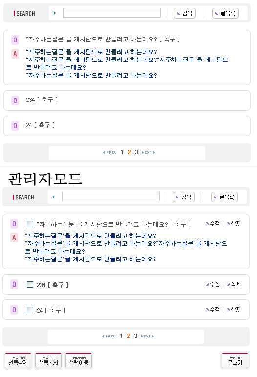 게시판 "자주하는질문"을 게시판형식으로첨부파일