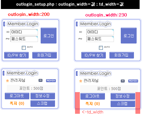 - td_width : 로그인후의 버튼좌우의 빈공간입니다. [기본:5px]