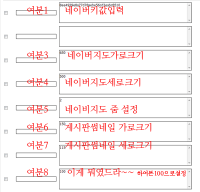 게시판관리자 여분필드에 네이버지도키값 입력하세요