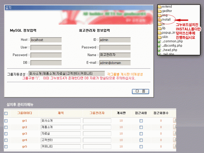 그누보드설치시 '그룹자동생성'기능 인스톨소스 정보