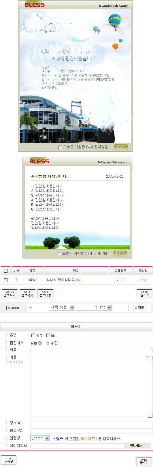 2) 이미지(팝업이미지)파일을 첨부하면 이미지만 팝업창에 보기게 됩니다.