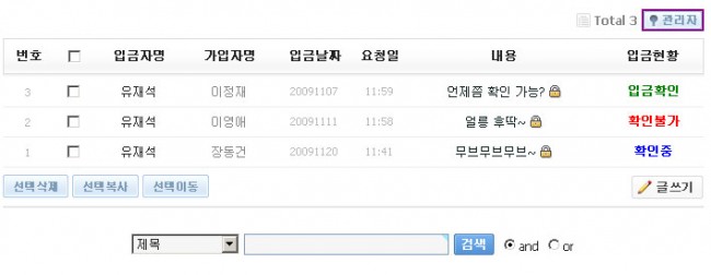 글일력후 관리자 가 보면 확인중이라고 출력되는부분이