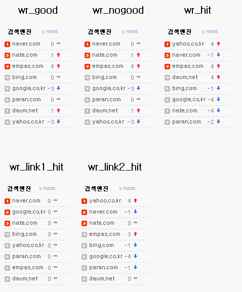 ※ wr_1 ~ wr_5 여분필드는 어제 순위를 저장합니다.