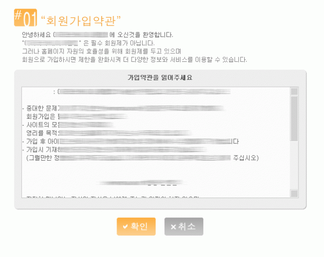*register.skin.php 의 상단 환영메세지 부분을 원하시는대로 수정해 쓰세요. (스샷과 달리 일단 어느홈에나 맞게끔 계몽적? 단어들로 바꿔놨습니다)