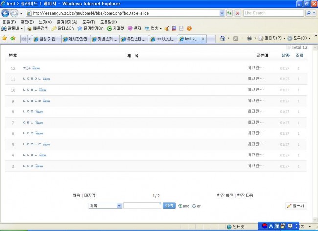 페이징 슬라이드 게시판(jquery) 정보