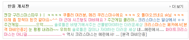 게시판 최신글을 뽑아주는데 줄바꿈 없이 색깔바꿔가며 뿌려줍니다.