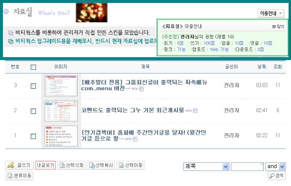 BTworks로 만든 게시판 타이틀 부분입니다.