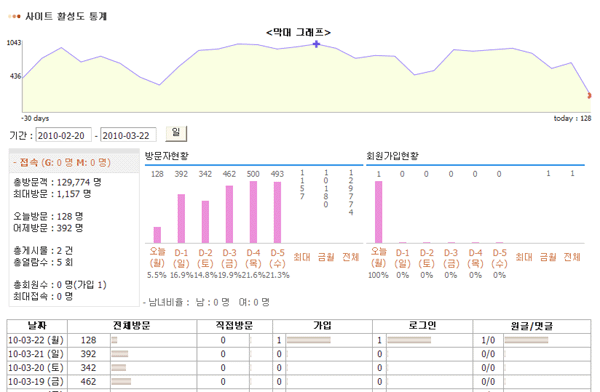 4. 자존심님의 dracocounter 스킨에서 요일을 추가하였고 일별회원가입통계를 새로 넣었습니다.
