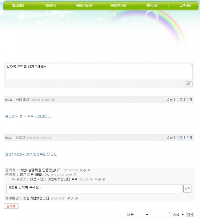 1. 회원/비회원 모두 방명록 쓰기 가능(단 비회원은 등록만 가능)
