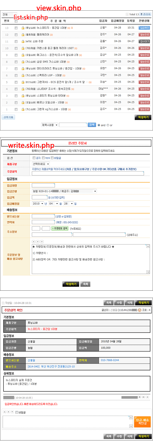 기타 직거래용 주문서 스킨 - gnu4.34.02버젼 적용첨부파일