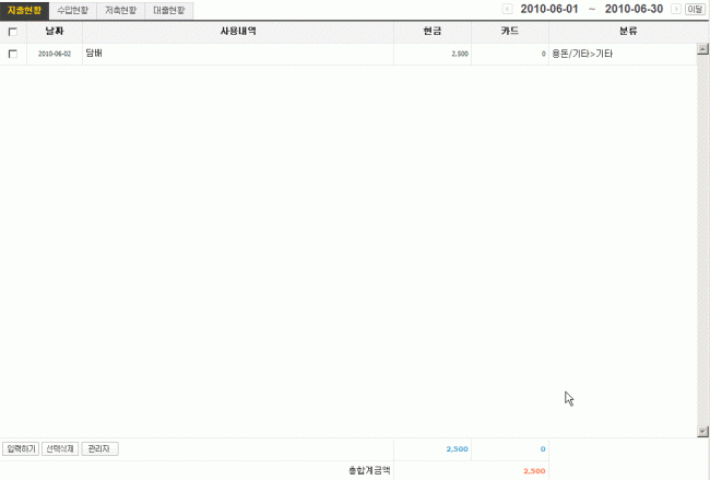 분류사용에서 in|out|deposit|loan 이렇게 해주셔야 합니다.