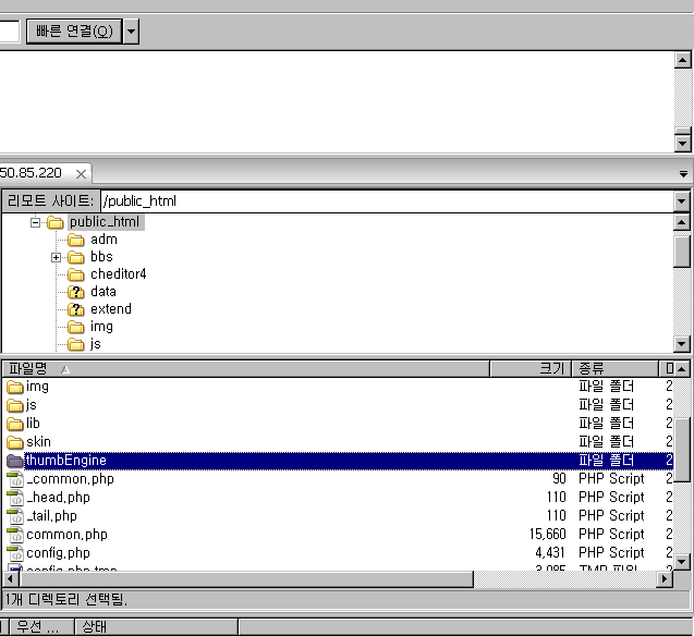 2. 첨부한 그림과 같이 그누보드 설치경로 최 상단에 "thumbEngine.zip"를 넣습니다.