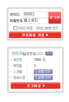 echo outlogin("basic"); // basic 스킨으로 아웃로그인을 출력합니다.