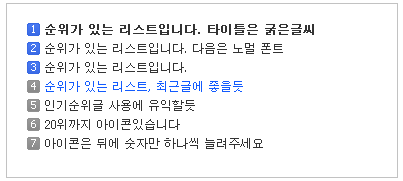 랭킹이나 글순위뽑을때 앞에 순위 표시되는 리스트-웹표준 코드만있음