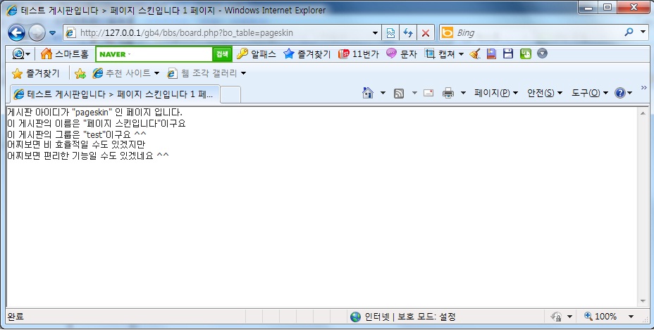스샷을 보면 아시겠지만 /bbs/board.php?bo_table=pageskin 로 접근을 했을때 일반적인 페이지가 나타나는 형태예요