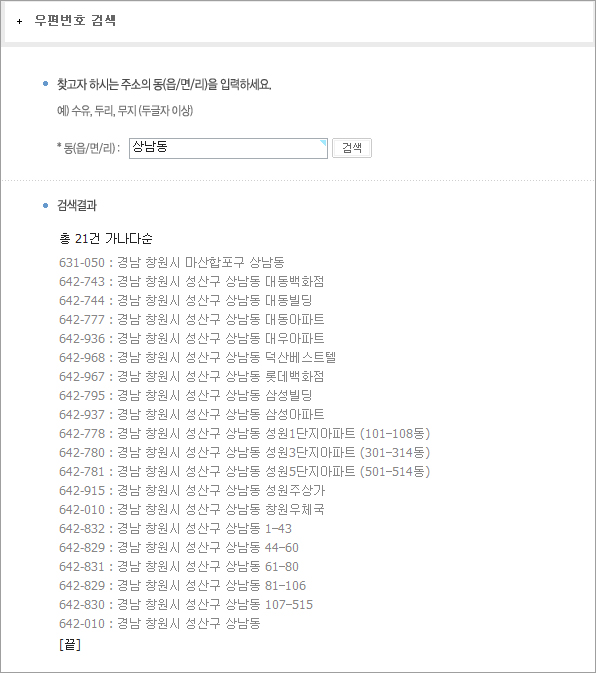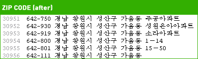 ※창원시 성산구의 우편번호 앞자리 '641' → '642'로 변경 (Naver 우편번호 참고)