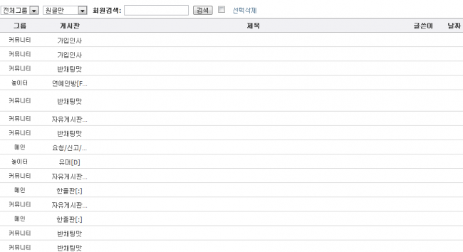 ㄴ. 불당님의 최근 게시글의 회원 검색 선택 삭제 할수 있는 부분도 적용 되어 있습니다.