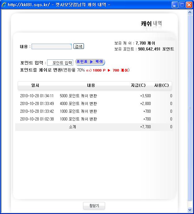 2010년 10월 28일 오후 3시 부로 새로 다운 받으세요. 캐쉬 변환률 설정 업데이트 했습니다.