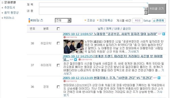게시판 김장군님의 RSS 뉴스 글들 디비로 저장 해주는 스킨을 수정했습니다.