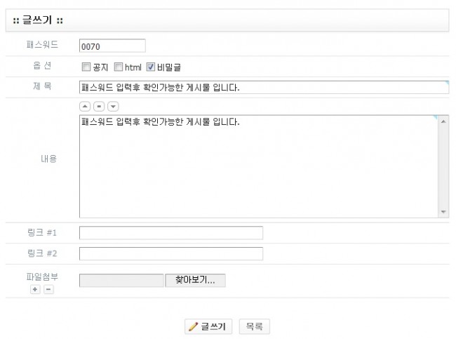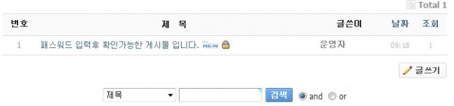시안확인에 사용하는 패스워드 지정 비밀글확인