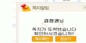 실시간 쪽지에 레이어 알림창 기능 쪽지입니다.