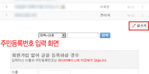 비회원 글등록시 주민등록번호 체크(?)