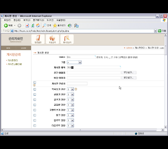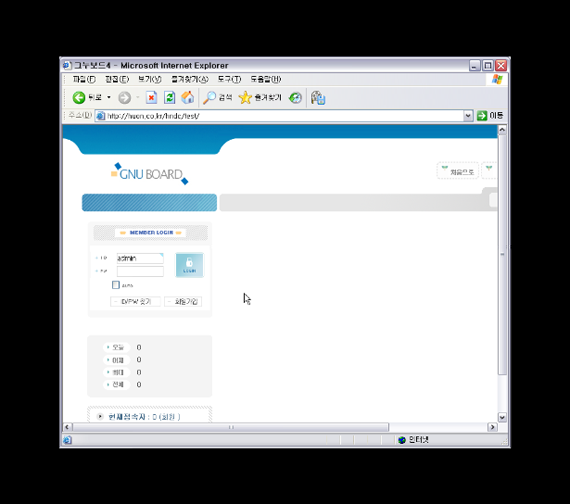 그누보드 처음 사용자를 위한 설치와 게시판 만들기 동영상(2분33초)