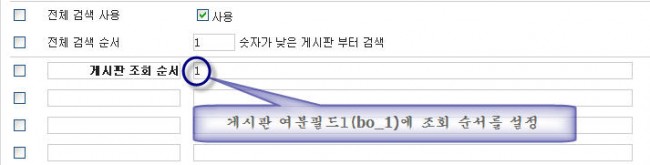 여분필드1(bo_1)에 보여줄 순서를 입력