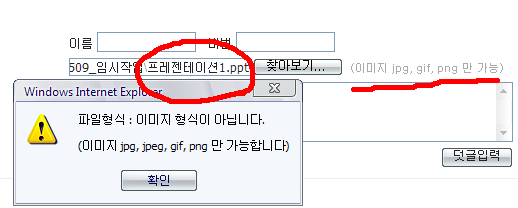 이미지형식이 아니라며 알림창이 뜨는 기능 입니다.