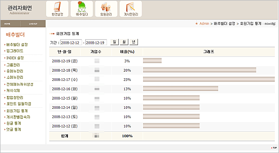 일, 월, 연도별 회원가입자 수를 보여주는 페이지 입니다.