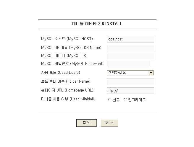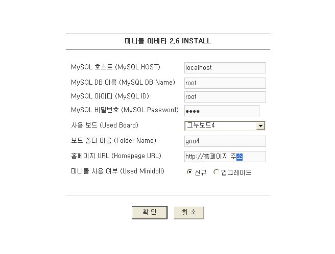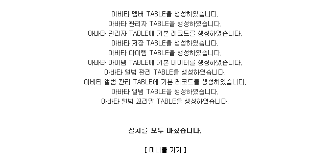 이제 미니돌을 설치해야 겠죠? http://홈페이지 주소/avatar/install.php 를 입력하여 설치를 합니다.