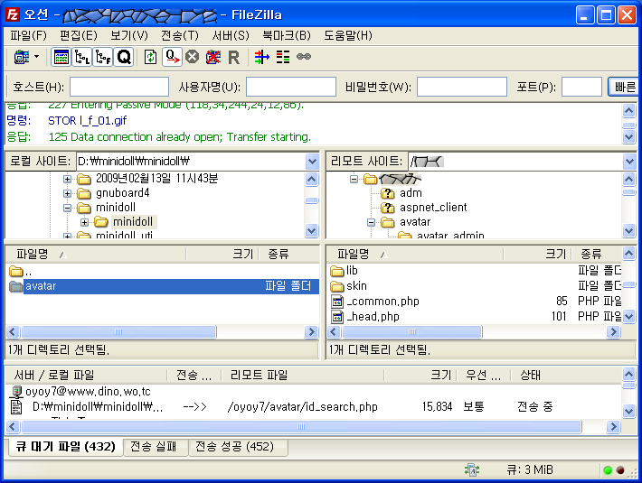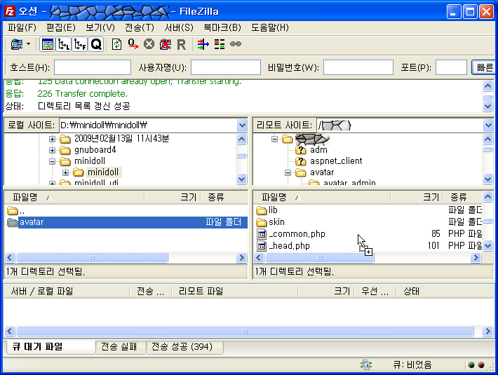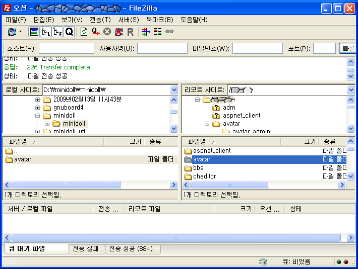 minidoll 폴더를 자신의 FTP 프로그램을 이용하여 폴더를 업로드 시킵니다.