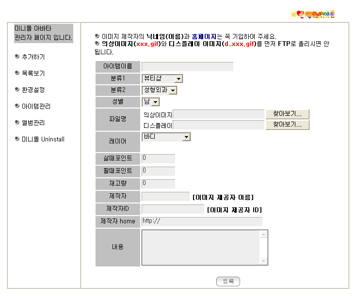 http://홈페이지 주소/avatar/avatar_admin.php 이곳이 아바타 관리자 페이지 입니다. 근데 별 쓸모는 없는 듯 하네요~~!
