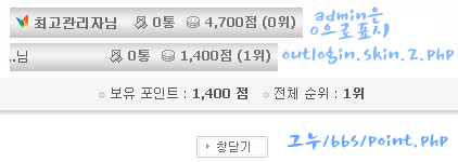 outlogin.skin.2.php와 포인트내역보기에 포인트순위 표시하기... 정보