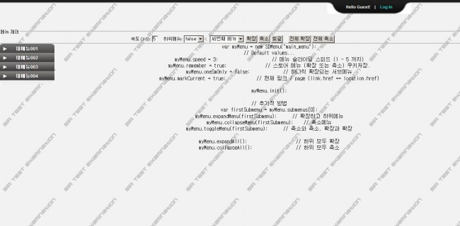로그인은 스킨자료실에 있고 로그인 하단을 주목하시면 좌측 메뉴에 대한 슬라이딩 제어가 가능한 폼을 만나게 됩니다. 여러가지의 응용 기술이 나올듯 해서 올려봅니다.